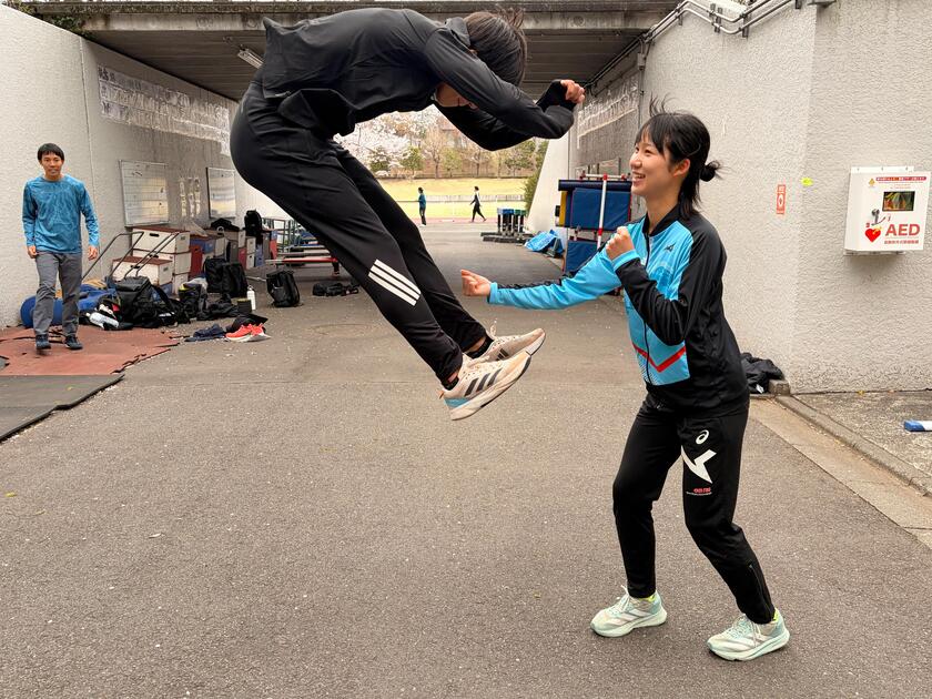 平山はブロックは違いますが冬季錬やトレ室でいつも真剣に練習に取り組んでいる姿をよく目にします。いつもニコニコしている彼女も練習や陸上のこととなると目の色が変わります。果敢にメニューに取り組みわからないことや気になることを先輩に聞きに行く姿は後輩ですがかっこよく見えます。今シーズンひとつ学年が上がり先輩となった彼女の活躍が楽しみです。2026シーズン頑張ろう!!