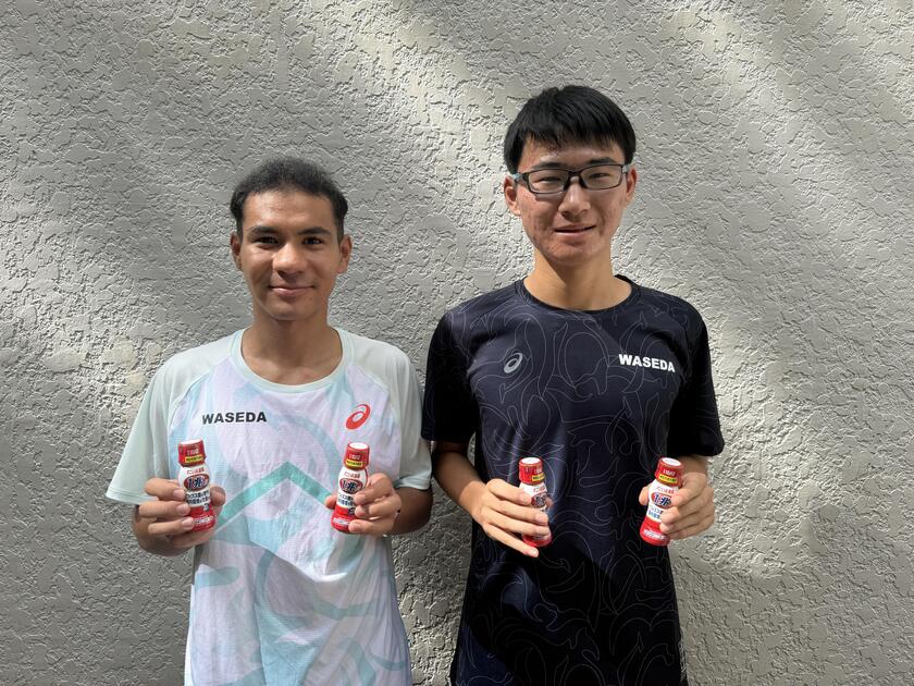 写真は左から長距離ブロック1年の桑原マテウス大地、同じく1年の安食光翔です。