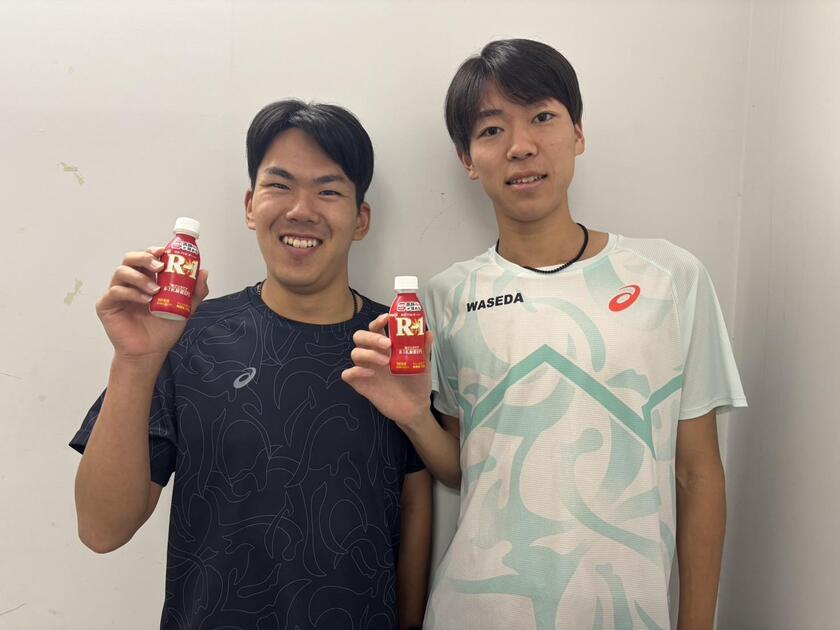 写真は左からマネージャーブロック4年の白石幸誠、長距離ブロック3年の安江悠登です。