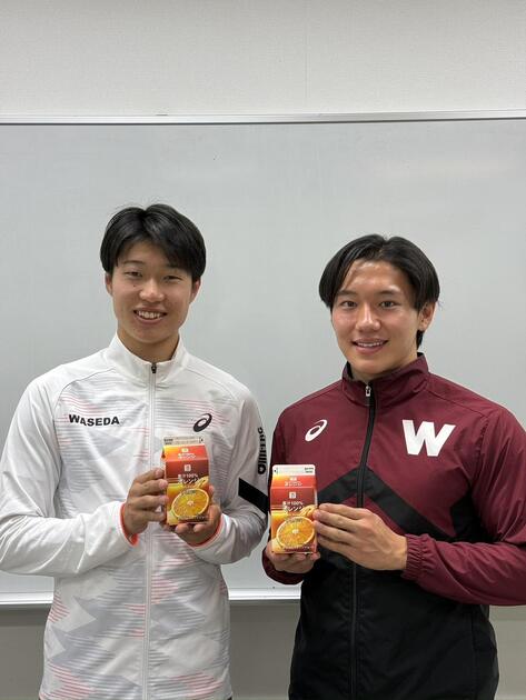 写真は左から短距離ブロック3年で副将の森田陽樹、同じく3年で主将の関口裕太です。