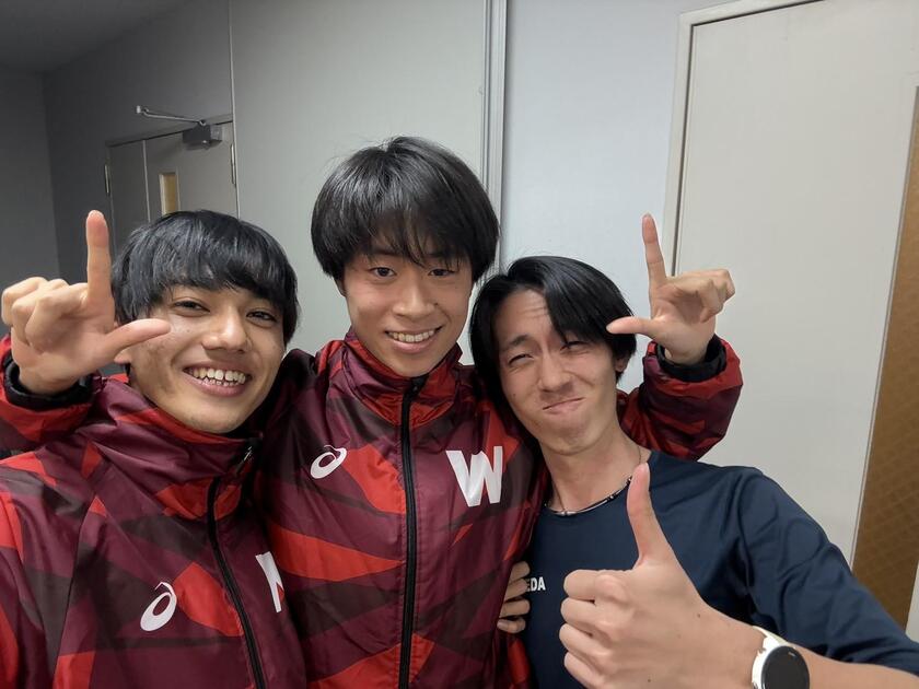 明日は同じ長距離ブロックで同期の大和田春に回します。大和田は漢祭り10000メートルで漢になりました。レース前から僕たち2人で漢になろうと話していたので2人で漢になれて2年生の箱根メンバーも活気づけられたかなとおもいます。大和田とは普段から一緒にいることが多く、かわいくてほわほわしてるような感じがありますが、陸上にはしっかり向き合えていて、練習にもすごく真面目に取り組んでいます。必ず補強をしたり、きつくても少しでも走る所がすごく尊敬しています。2年の上3人に勝てるようにこれからも2人で頑張ろう!