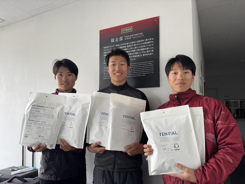 写真は左から短距離ブロック3年の由井響、同じく3年の森田陽樹、同じく2年の水野琉之介です。