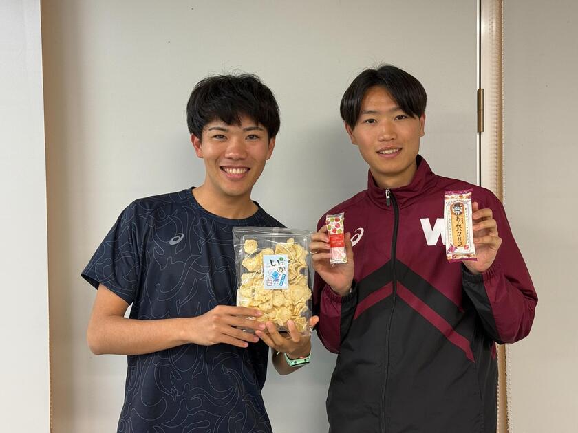 写真は左から長距離ブロック4年の山﨑一吹、同じく2年の鈴木琉胤です。